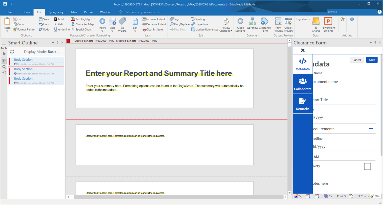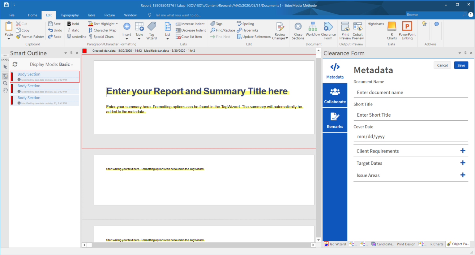 Metadata Tab - Edit State